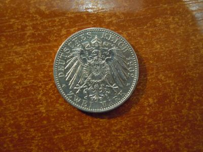 2 марки 1902г Баден, Германия, 50 лет правлению Фридриха I, 11,09гр, серебро, тираж 375 тыс.шт.