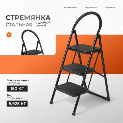 Стремянка 1 секция, 3 ступени, сталь, 115х64х45.5 см, E080016